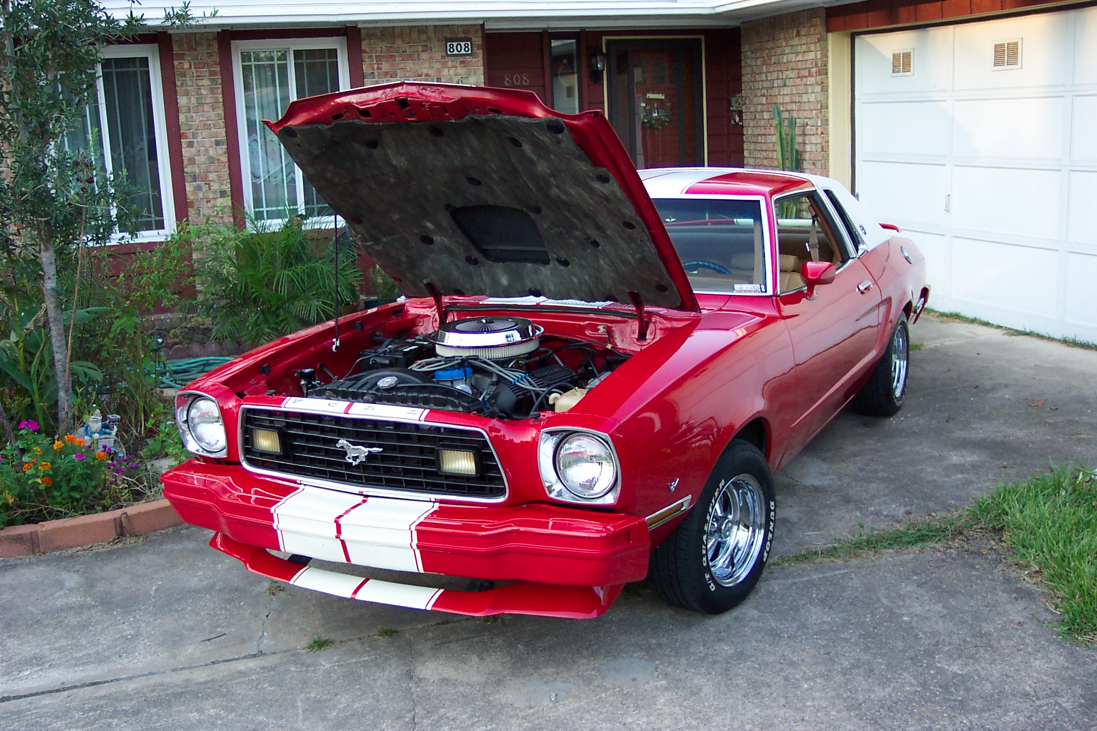 I paid $800.00 for the car at a used car lot in downtown Omaha. It was beat up, but the factory V8 drew me in, and I thought it'd be a nice car to customize. I went through it once in Omaha, but I had to use it as a daily driver for several years and the weather took its toll. My last year there I pulled the engine and trans, had the engine bored .60 over, milled the heads, installed a performance cam, headers, mid-rise (Edelbrock Performer) intake and 500cfm Edelbrock carb. I had the tranny performance rebuilt. After I relocated to Florida I bought a MIG welder, flex grinder, and some body tools and tore the car down to nothing. I worked on it for several years. This is the final outcome. I put it in some of the local shows. It's the only Mustang II around here, and it draws a lot of interest.