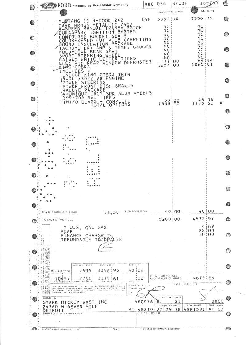 This is our King Cobra that we bought in 1979. It's almost completely original, only having changed the hood decal, tires, and a few misc parts. It is a very basic Mustang, only options beyond the KC package are tinted glass and rear defrost, not even a radio! Now has a little over 29,000 miles on it.