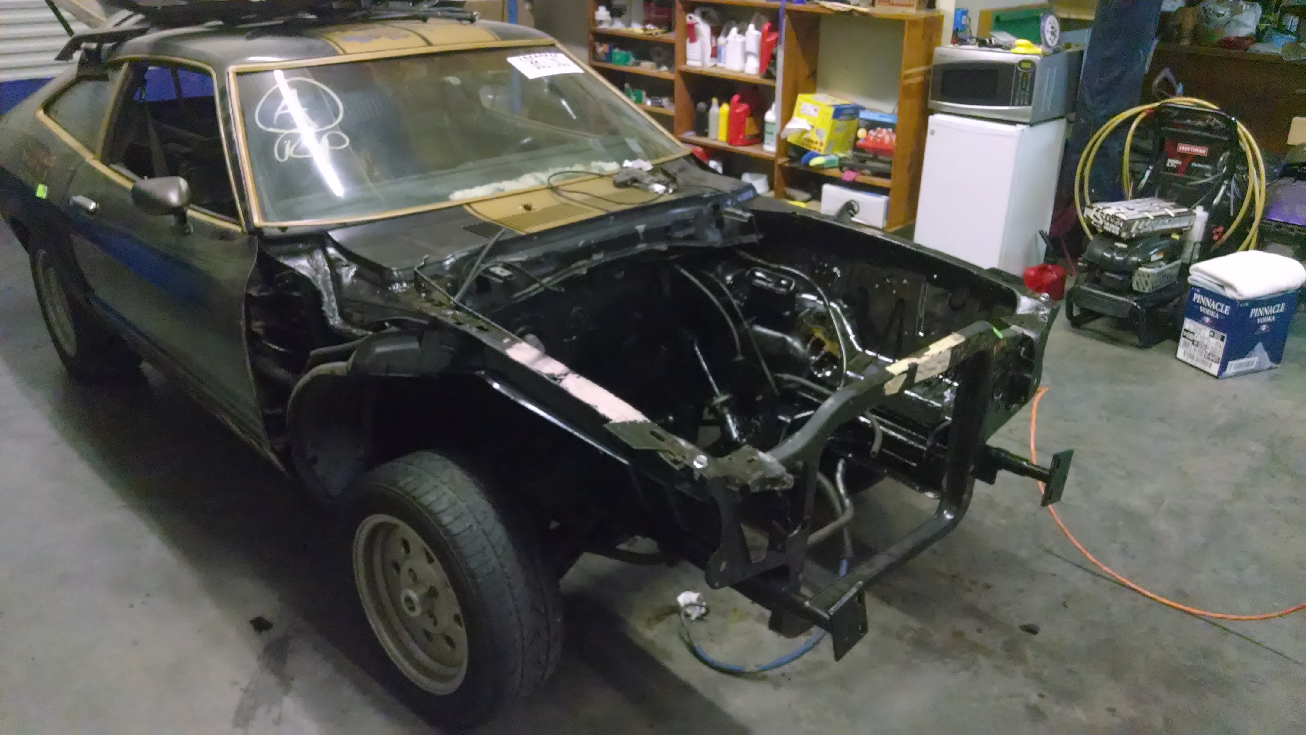 A work in progress. Bought this car as a 74 to find out it is a 76 cobra 2. This is my first project this big and all progress has taken about 3 months so far. I am deleting all of the trim work for a very smooth look. I will upload more photos as work progresses.