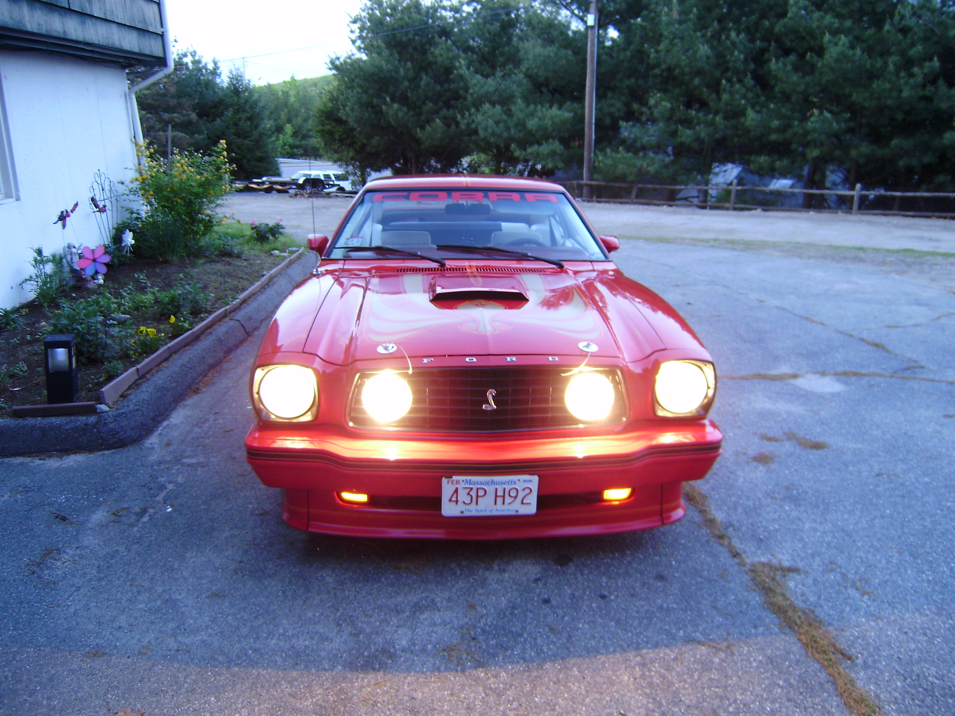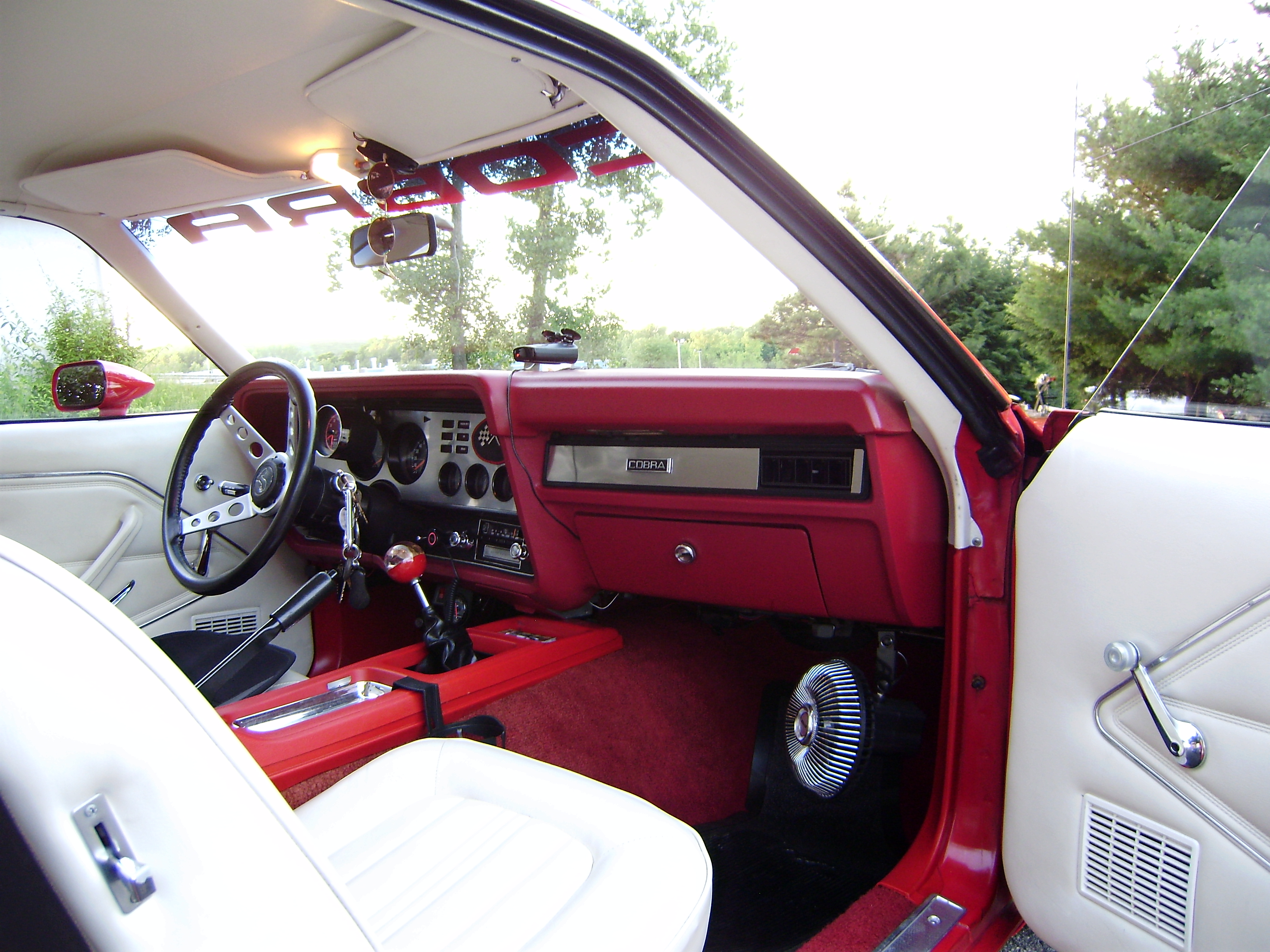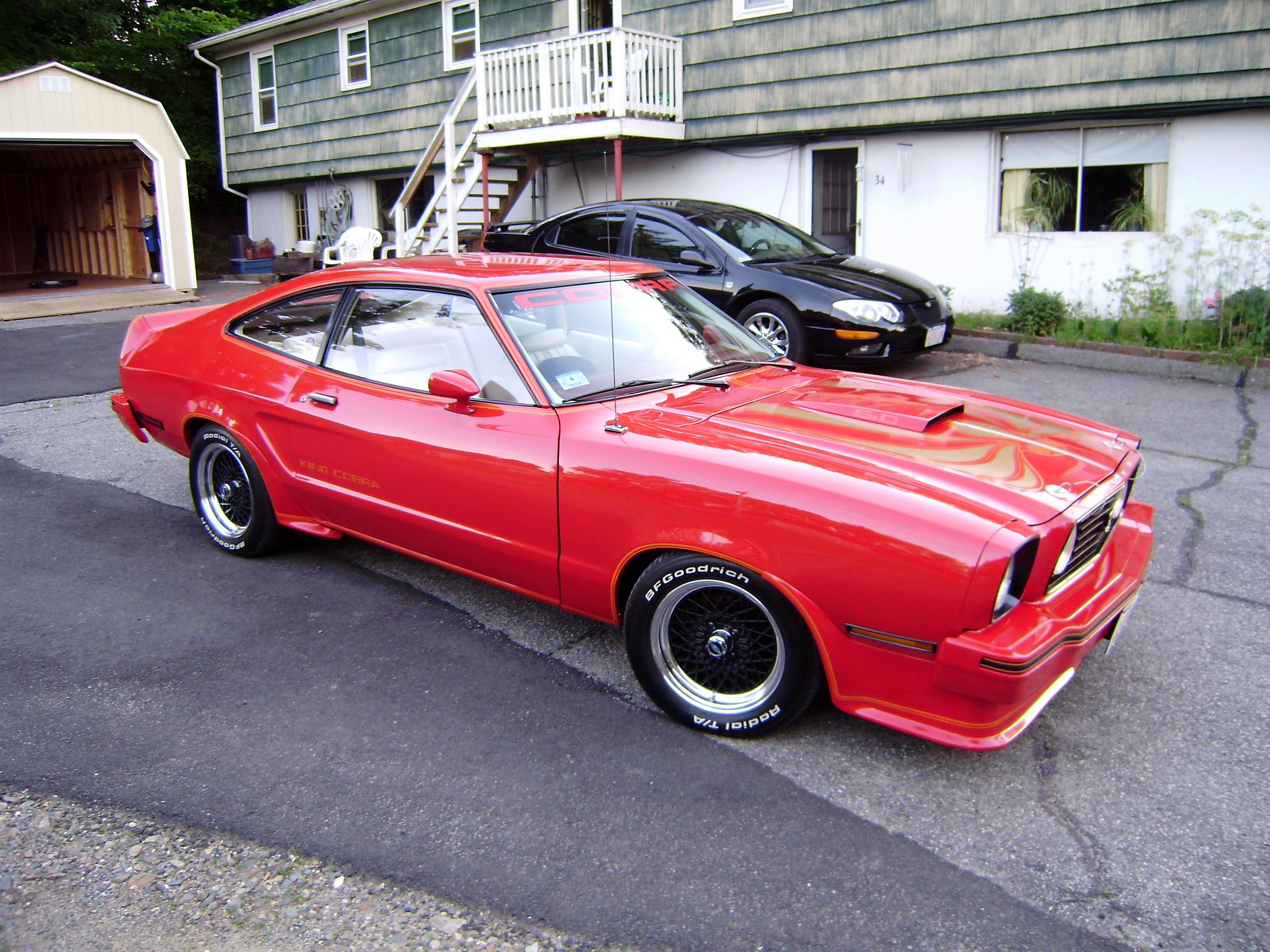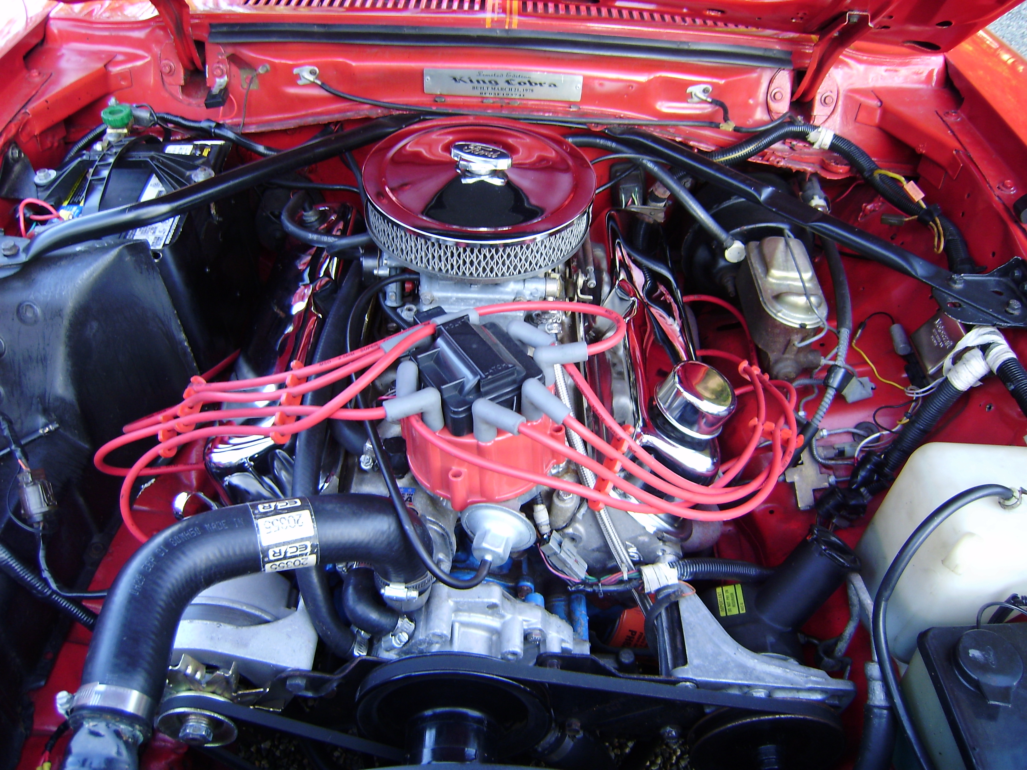 1978 king cobra 5.0L 4 speed - rebuilt engine 300+ hp - alterations include aluminum roller rocker heads - aluminum performer intake manifold- holly 600 carburetor - M S D distributor - mild lift cam / custom duel exhaust system with blackjack headers / uni body frame connectors / 15 inch aluminum wheels with one & a quarter offset in the rear.
