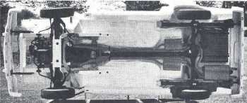 The isolated suspension is actually a mini-subframe similar to that found previously on larger Fords. A front sway bar ties in the lower control arms, which in turn have compression struts to absorb road shock. A lot of engineering went towards a quiet ride, and much of the road vibration is dissipated through the sub- frame instead of being transmitted through the body structure to the occupants. The rear suspension is a leaf spring arrangement totally devoid of any metal-to-metal contact through the liberal use of rubber bushings. The staggered shock treatment (left behind, right forward of the axle housing) counteracts wheel hop, as attested to by several hard burnouts. All rearends are Hotchkiss types with 3.55:1 gearing.