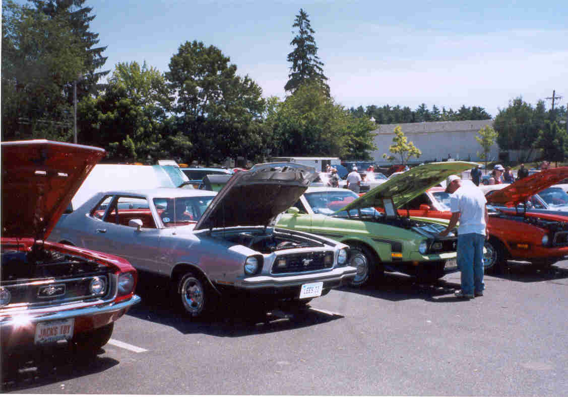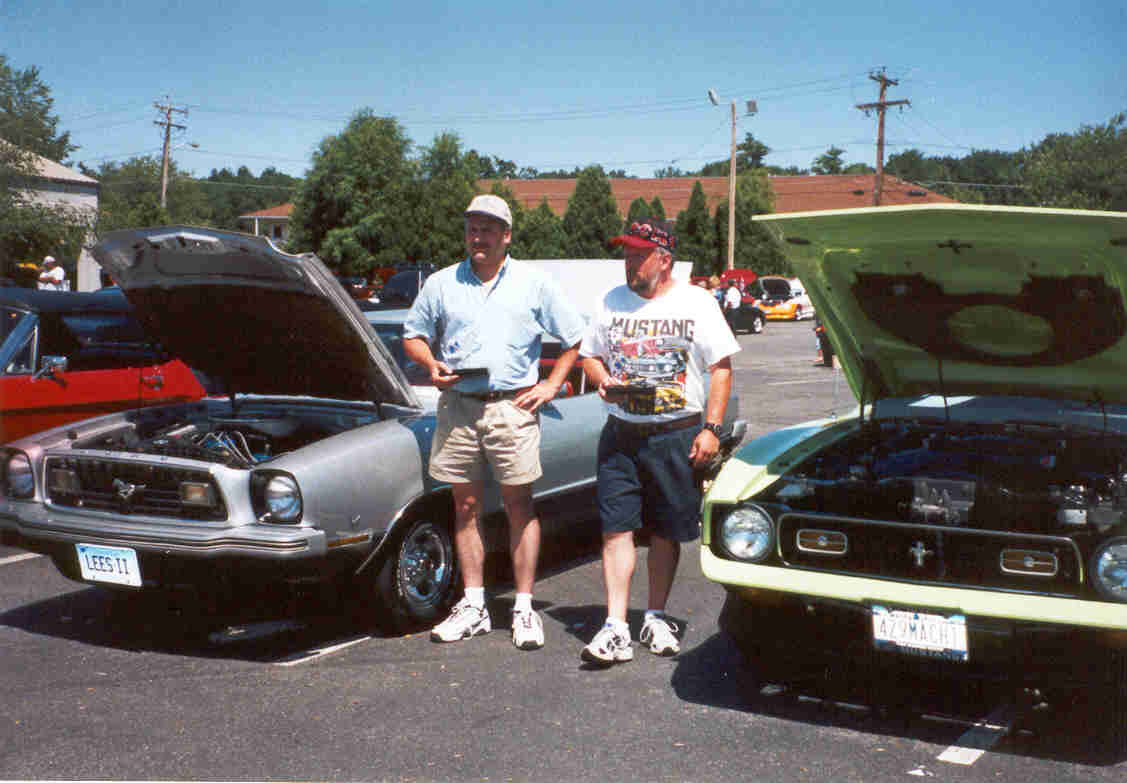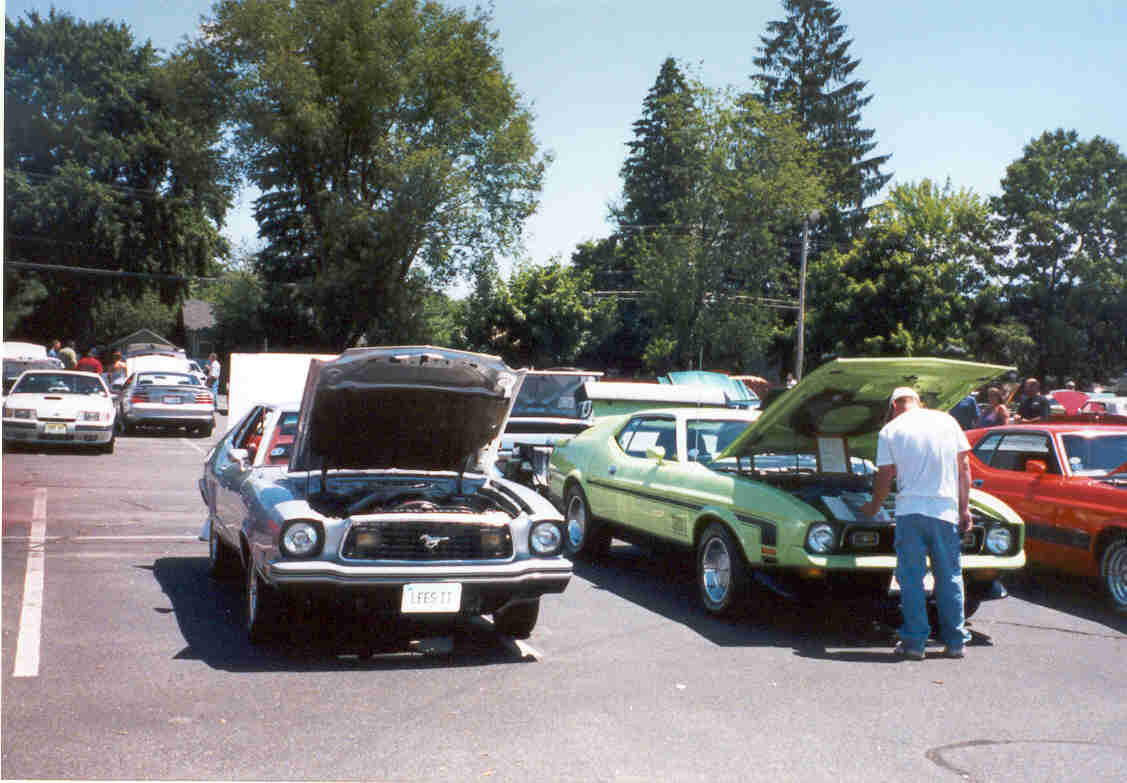 The North Country Mustang Club Contingent Lee Lafountain's Silver '78 Mustang II Coupe, Miles DeCoste's Green '71 Mach 1 429